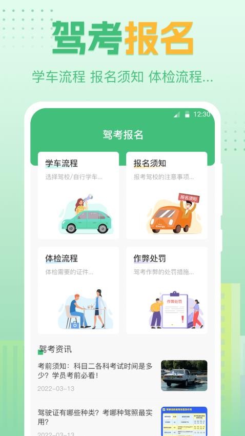 打通报名预约、体检安排、约考提醒等环节,提供从理论到实操的全周期服务。